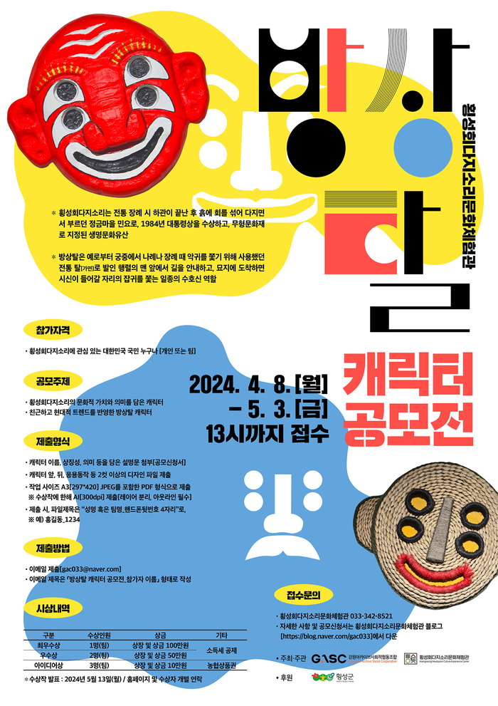 [횡성회다지소리 콘텐츠 개발, 국내 최초 '방상탈 캐릭터' 공모전 개최]